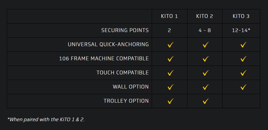 KiTO delivers maximum holding power for more vehicles, with faster setups and better repairs. No vehicle specific add-ons needed.